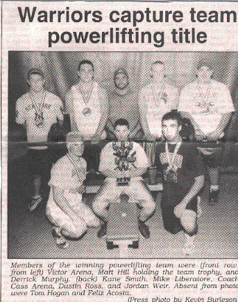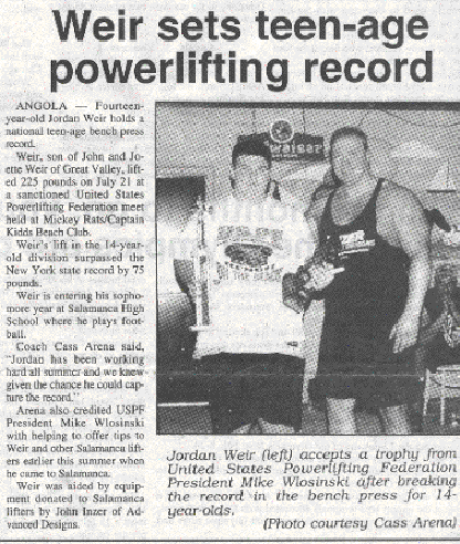 The Salamanca Warriors Weight Training program has been very successful. The football players go in the high school's weight room three nights a week to train. The program is run by Cass Arena, who devotes his time to making the players stronger and faster. The lifting program consists of bench pressing on Monday, squatting on Tuesday, and dead lifting on Thursday.