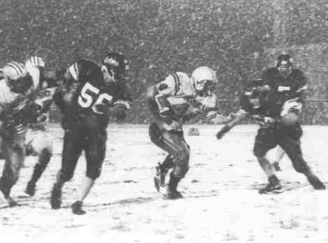 ![]() Ross trying to find running room on the snow covered field